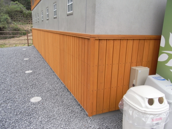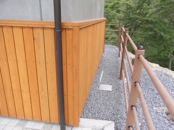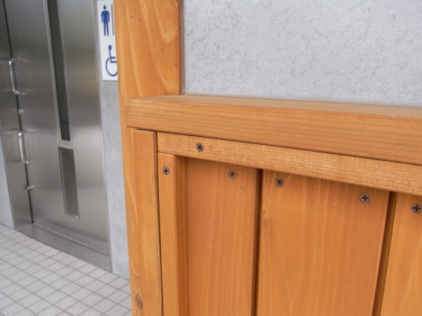 公園施設/エクステリア Park / Exterior TOP公園施設/エクステリア施工実績板塀観音山公園(群馬県) 観音山公園(群馬県) 印刷 群馬県高崎市にある観音山公園。この駐車場横に建てられた公衆トイレの腰壁部分の木化粧を納入しました。 公園のトイレはユニット式、現場施工式などありますが、いずれもコンクリート製のものが多く使われています。 これに木化粧を行うことで緑豊かな景観になじむトイレとなります。 2016年施工 【担当営業所】北関東営業所 TEL 0270-32-0611 カテゴリ 板塀 関連画像 全景 サイン 逆側の全景 固定の詳細 出隅の納まり 裏側