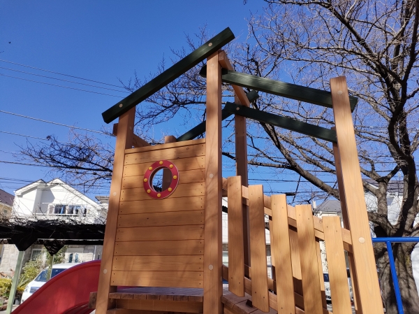 杉並区の住宅地内にある阿佐ヶ谷二丁目公園に、木製遊具を納入させていただきました。特徴的な葉っぱ型の登はん遊具や、ツリーハウスをイメージさせる屋根フレームは子どもたちの好奇心を高め、近隣住民の憩いの遊び場になっています。