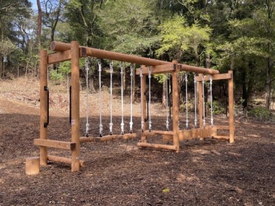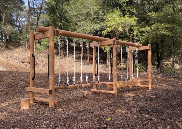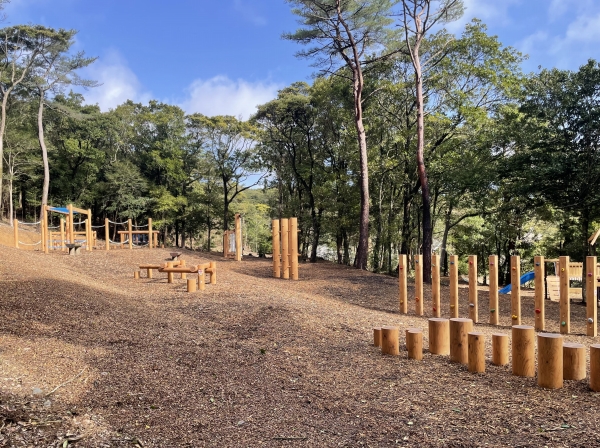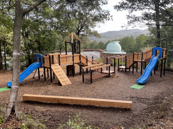 このたび、冒険広場と森林館に遊具を複数納入いたしました。冒険広場には子どもたちに人気のコンビネーション遊具やアスレチック遊具を計11基、森林館には昆虫型モニュメントのバグバグフレンズ2基とぶらんこが設置されています。登る、渡る、滑るなど様々な運動を楽しめるバラエティ豊かな遊具が点在しており、施設を訪れた子どもたちの好奇心と挑戦心を育む遊び場となっています。