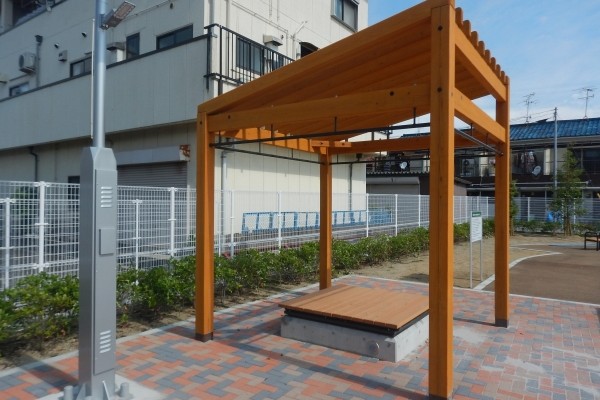 公園施設/エクステリア Park / Exterior TOP公園施設/エクステリア施工実績防災天美北第一公園(大阪府) 天美北第一公園(大阪府) 印刷 大阪府松原市にある天美北第一公園に、防災パーゴラ、ベンチを納入いたしました。 防災パーゴラとは、災害時に桁に取り付けたパイプにテントシートをかけ、緊急の救護室などとしても使用することができるパーゴラです。 その他に休息用のベンチの他に、簡単な運動ができる背伸ばしベンチとあん馬ベンチを納入しました。 2024年施工 【担当営業所】大阪営業所 TEL 072-439-4413 カテゴリ 防災 ベンチ 健康器具 パーゴラ 関連画像 防災パーゴラ テント取り付け テント取り付け作業 背付きベンチ 背伸ばしベンチ あん馬ベンチ