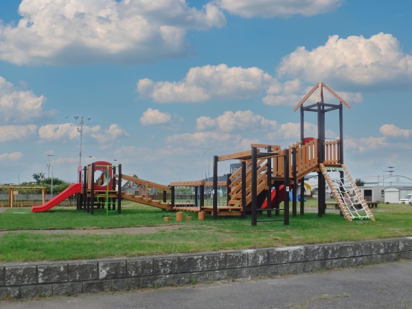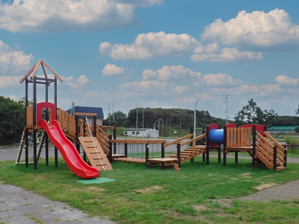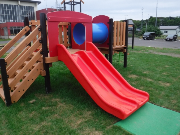 北海道にある天塩町ファミリースポーツセンターのコミュニティ広場にコンビネーション遊具とブランコを納入いたしました。