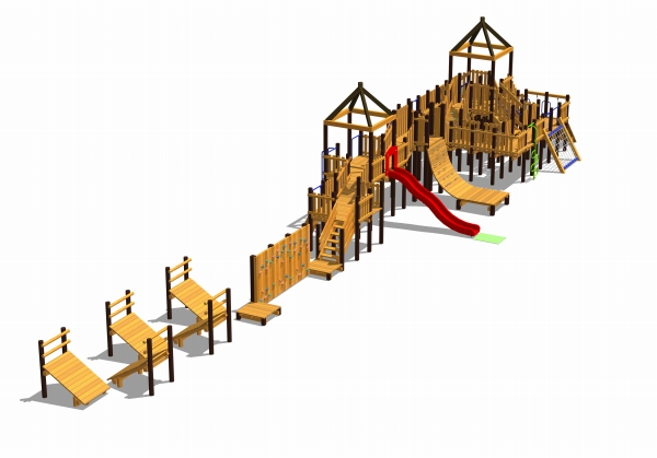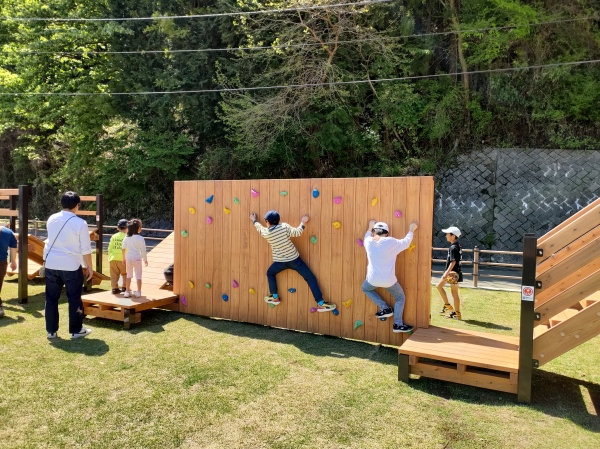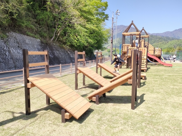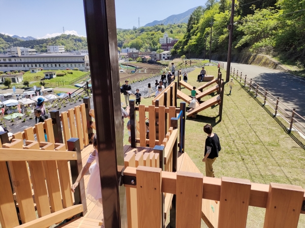 公園施設/エクステリア Park / Exterior TOP公園施設/エクステリア施工実績遊具つるビーパーク・いこっと(山梨県) つるビーパーク・いこっと(山梨県) 印刷 山梨県都留市に新しい公園「つるビーパーク・いこっと」ができました。 この公園に、木製遊具の柱にスチールを使って、さらに耐久性を高めたテツモク遊具を納入しました。シンボリックな回廊状の塔を中心にあちこちから昇り降りが楽しめる立体迷路のような遊具です。サスケジャンプや壁渡り、そそり立つ壁など、子ども達の挑戦心をくすぐる遊びアイテムがついています。 2025年施工 【担当営業所】営業本部景観エクステリア部 TEL 03-3254-0832 カテゴリ 遊具 関連画像 イメージパース 全景 回廊状のトリデ部 そそり立つ壁とすべり台 壁渡り タワーからの眺め
