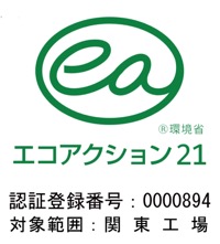 - 関東工場にて「エコアクション21」認証・登録。 ※「エコアクション21」とは環境省が推奨するISO14001をベースとして構成された 継続的環境経営の仕組み。