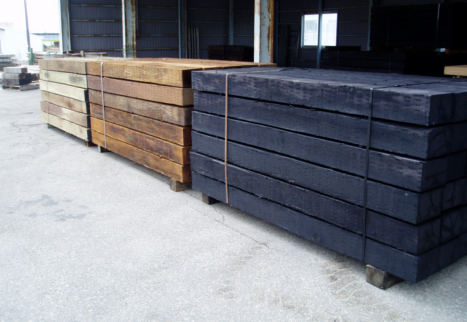 出荷されるホームセンター向け枕木 出荷されるホームセンター向け枕木