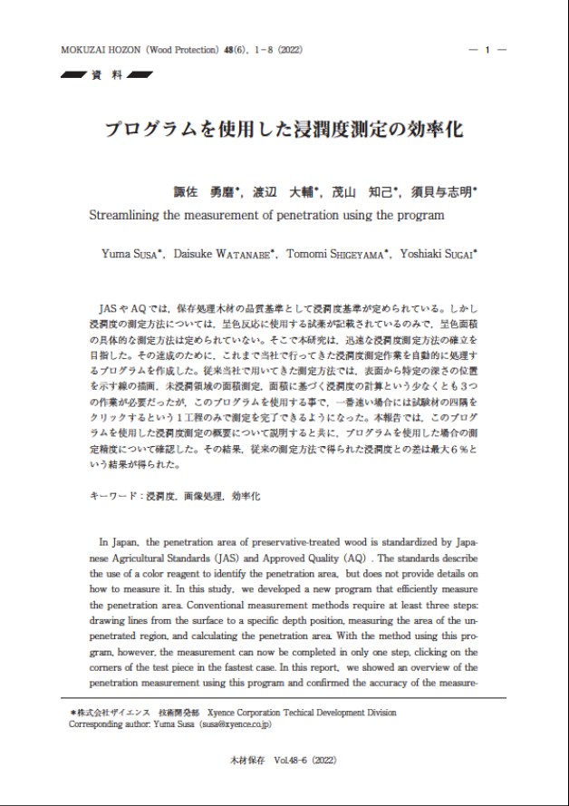 「木材保存」誌に開発成果「プログラムを使用した浸潤度測定の効率化」が掲載されました