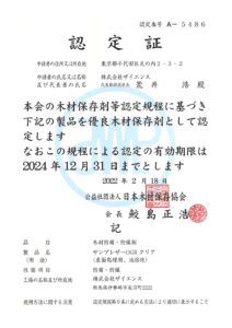 お知らせ News TOPお知らせ開発/薬剤/防蟻サンプレザーOGRクリアが(公社)日本木材保存協会の薬剤認定を取得しました。 NEWS お知らせ 2022.03.18 開発/薬剤/防蟻 サンプレザーOGRクリアが(公社)日本木材保存協会の薬剤認定を取得しました。 サンプレザーOGRクリアは油溶性の表面処理用薬剤で、浸透性にすぐれ、長期間にわたって防腐防蟻効力を持続します。遊具、デッキ、木橋など木製エクステリアのメンテナンス、並びに木造建築物の外壁や、加圧注入処理ができないCLT等の大型部材の処理にも適しており、無色のため、材色の変化もありません。また処理後に木材保護塗料による着色塗装も可能です。 2022.03.16 エクステリア 国立公園の納入実績の紹介。3月16日は国立公園指定記念日です。 2022.03.23 エクステリア パーゴラと野外卓のリニューアル。千鳥が淵戦没者墓苑(東京都)
