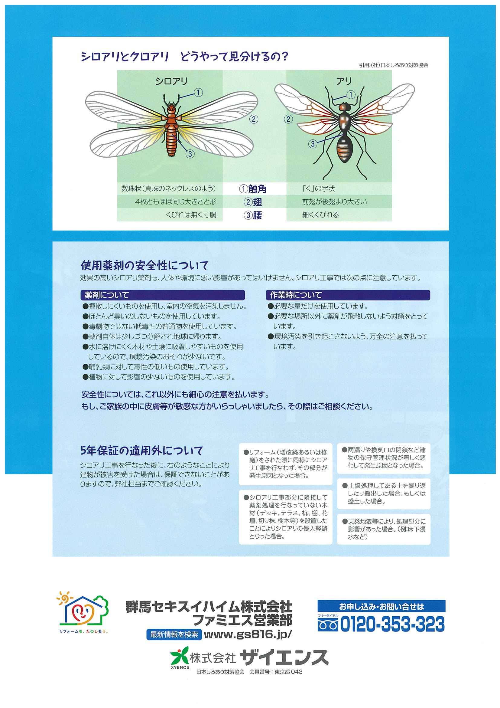 お知らせ News TOPお知らせ開発/薬剤/防蟻平成29年5月13日(土)~14日(日)開催の「住まいのわくわくフェスティバル」にてブースを出展します NEWS お知らせ 2017.04.25 開発/薬剤/防蟻 平成29年5月13日(土)~14日(日)開催の「住まいのわくわくフェスティバル」にてブースを出展します 平成29年5月13日(土)、5月14日(日)午前10時~午後5時に群馬セキスイハイム本社ビルにて群馬セキスイハイム㈱様主催による「住まいのわくわくフェスティバル」が開催されます。弊社のブースでは、「防蟻工事」における薬剤や工法のご説明、室内で飼われているペットへの影響をご心配されているお客様でも安心してご採用いただけるシロアリ工事用資材などの展示を予定しております。ご興味のあるお客様は是非ご来場下さい。 2017.04.17 住宅/防腐木材 タナリスCYで加圧注入処理を施した農業用資材について(北関東営業所) 2017.05.01 住宅/防腐木材 平成29年5月20日(土)~21日(日)開催の「プロウッドスタイルフェアー2017」にてブースを出展します