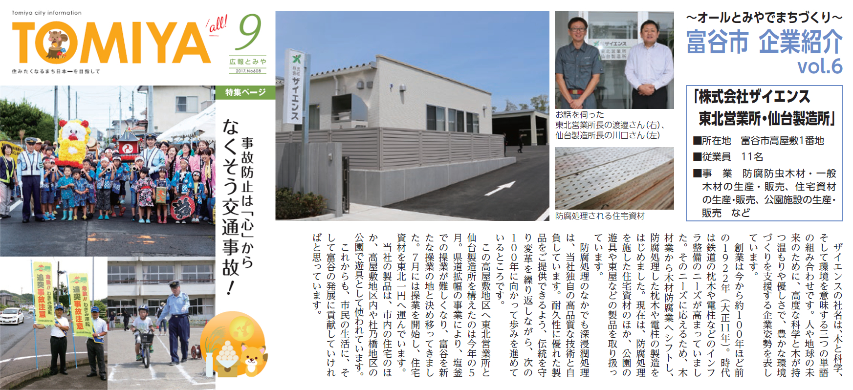 新仙台製造所・東北営業所が富谷市の広報で紹介されました