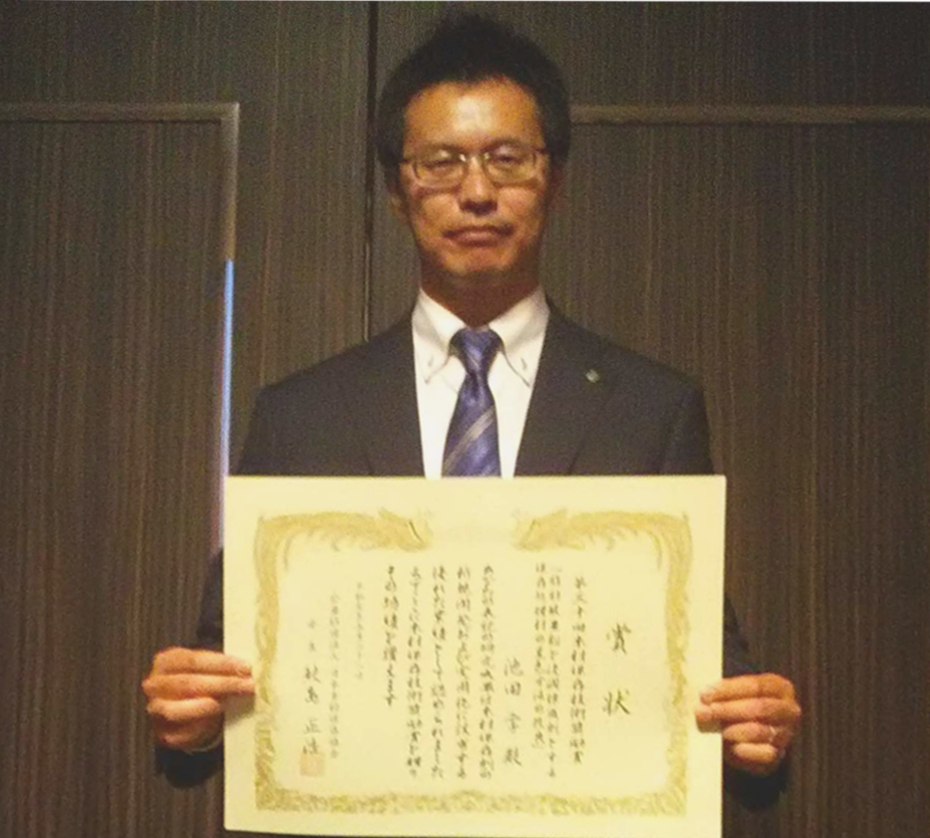 公益社団法人日本木材保存協会第35回年次大会(5月28~29日:東京都)において、池田学職員が「脂肪酸亜鉛を浸潤標識剤とする深浸潤処理材の呈色方法の改良」の業績により、第30回木材保存技術奨励賞を受賞しました。