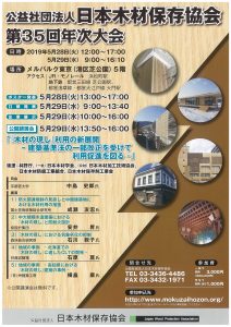 お知らせ News TOPお知らせ開発/薬剤/防蟻第35回日本木材保存協会年次大会で研究発表を行います NEWS お知らせ 2019.05.17 開発/薬剤/防蟻 第35回日本木材保存協会年次大会で研究発表を行います 公益社団法人日本木材保存協会第35回年次大会(5月28~29日:東京都)において、弊社から深浸潤処理に関する下記2件の研究発表を行います。1件は28日(火)のポスター発表、もう1件は29日(水)の口頭発表です。参加される方はぜひご覧ください。 ポスター発表 カラマツ材における油溶性保存処理薬剤の浸透性と組織学的特徴 (発表者:道総研林産試験場様)口頭発表 深浸潤処理木材中における亜鉛化合物および有効成分の浸透・拡散評価(発表者:名古屋大学様) 2019.04.26 エクステリア 施工実績更新しました(5月の特集「木製板塀(木塀)」) 2019.05.24 開発/薬剤/防蟻 非住宅建築物(児童施設)におけるシロアリ等劣化対策について(営業本部)