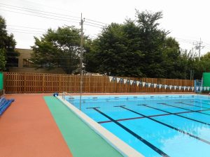 この度、都立高校3校のプール周りのコンクリート塀を木塀にリニューアルするにあたり、当社で木工事を行ないました。