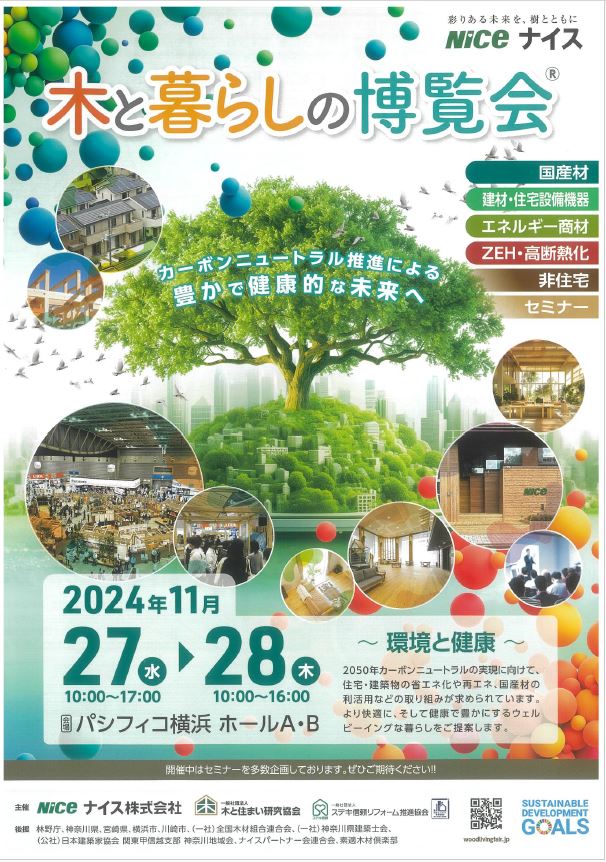 お知らせ News TOPお知らせ住宅/防腐木材2024年11月27日(水)~11月28日(木)にパシフィコ横浜にて開催される『木と暮らしの博覧会』にブース出展いたします NEWS お知らせ 2024.11.21 住宅/防腐木材 2024年11月27日(水)~11月28日(木)にパシフィコ横浜にて開催される『木と暮らしの博覧会』にブース出展いたします 2024/11/27~11/28の2日間、パシフィコ横浜で行われるナイス㈱主催『木と暮らしの博覧会』にブース出展いたします。住宅の高断熱高性能化に伴う保存木材の活用や国産材への保存処理を提案いたします。永く木材を使うことを提案する展示となっておりますので是非お立ち寄り下さい(写真は昨年度の展示状況です)。 2024.11.19 エクステリア 富士山を眺めることができる展望台を納入。鳴沢活き活き広場(山梨県) 2024.11.25 エクステリア 飛行機の発着を眺めることができるデッキ。成田国際空港第一ターミナル(千葉県)
