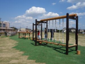 鋼製柱と木材を組み合わせたアスレチックの事例。袖ヶ浦駅海側近隣公園(千葉県)