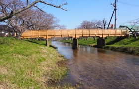 今回ご紹介するのは、埼玉県さいたま市の見沼地域を流れる芝川にかかる桜橋です。コンクリート製の橋脚は再利用し、桁、床板、高欄は保存処理木材を使用。デザイン、形状は改修前の木橋の形状にあわせたものとなっています。