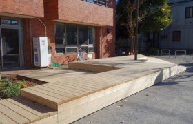今回ご紹介するのは、福井県の道の駅「若狭熊川宿」。木製デッキを納入しました。デッキにはカウンターテーブルなども設けており、休息し、景観を楽しむことができます。他木製サイン、木橋、木塀なども納入しました。