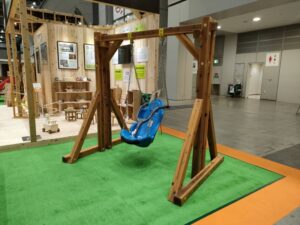 当社は、木製インクルーシブ遊具(コンビ遊具、ぶらんこ)を展示しました。
