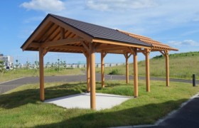今回ご紹介するのは、大山隠岐国立公園内「三瓶山」です。三瓶山は6つの峰が連なる山です。この峰の一つ大平山にある東の原展望テラスに東屋、サイン、ベンチを納入しました。