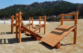 緩斜面を活かした木製アスレチック遊具を納入。大垣西公園(岐阜県)