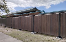 古都の街並みになじむ勾配、角度対応型の木柵。東寺前(京都府)