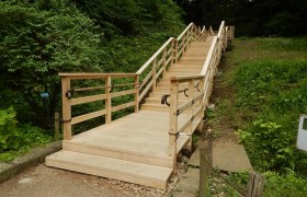 人々に長年親しまれ、使われてきた木道を、リニューアルした事例のご紹介です。全面改修は既存の施設があった場所に再設置を行うため、現地の測量や既存施設の計測が必要です。計測結果に基づき、木道の設計、製造、組立設置を行った改修事例をご紹介します。