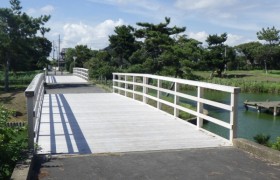 今回紹介するのは、福岡県筑前町にある夜須高原記念の森の橋を改修した事例です。太鼓橋を、車椅子利用者なども通行できるように、スロープと中間デッキを組み合わせ、ユニバーサルデザインに配慮した形にリニューアルしています。