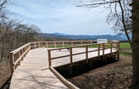 コンクリート製トイレの腰壁に木化粧。観音山公園(群馬県)