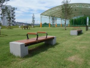 今回ご紹介するのは、山口県岩国市の愛宕山フクロウ公園に納入したベンチです。通常のベンチに加え、野外卓、かまどベンチ、フィットネスベンチ、収納ベンチなど様々なベンチを納入しています。
