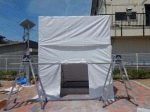 今回ご紹介するのは、大阪府松原市にある天美北第一公園です。災害時に桁に取り付けたパイプにテントシートをかけ、緊急の救護室などとしても使用することができる防災パーゴラを納入しました。他、ベンチ類も納入しています。