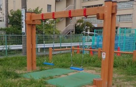 その中でも柱にスチールを使って、さらに耐久性を高めたテツモク遊具の事例です。