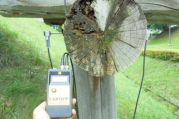 - レジストグラフ、ファコップといった専門の器具を使い、木材内部の劣化を点検します。