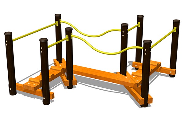 高齢者向けの簡単な運動ができる健康器具です。手すりをもって平均台の上を進みます。