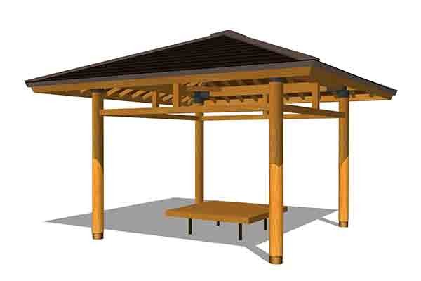 接合金物を使用し、低価格ながらも高級感のある意匠を実現した東屋です。木部の腐朽に対し10年保証です。