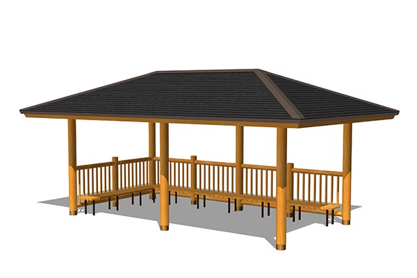 | 仕様 | 本体/杉材、屋根/ガルバリウム鋼板、座板/桧、ベンチ脚/スチール |