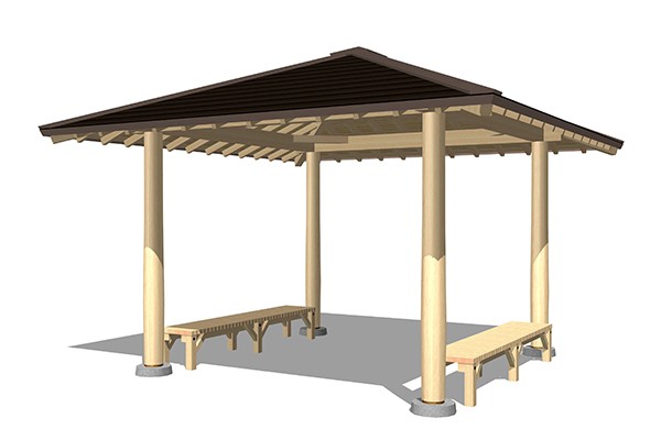 | 仕様 | 木部/杉材、柱/桧磨き丸太、屋根/ガルバリウム鋼板、ベンチ/桧 |