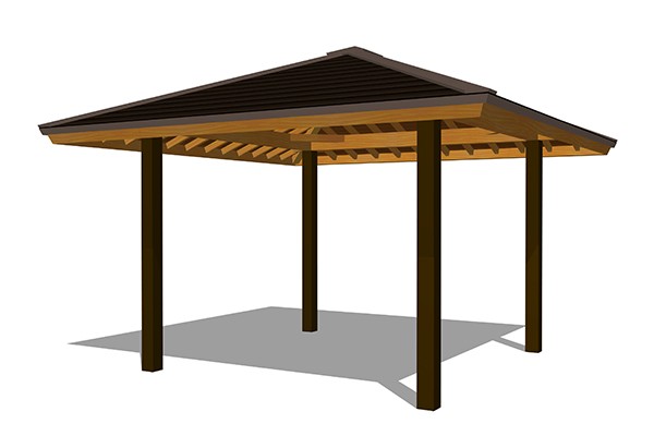 柱に耐久性の高い鋼管を使用した東屋です。木部の腐朽に対し10年保証です。