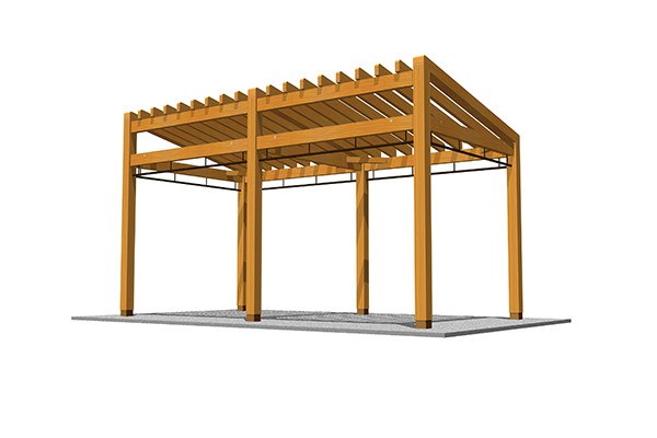 災害時にテントをかけて救護施設などに使用することができるパーゴラです。木部の腐朽に対し10年保証です。