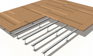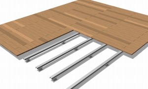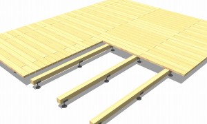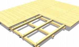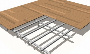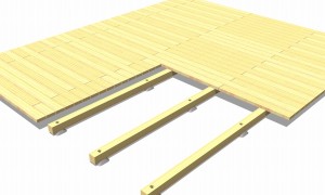 EDS-001-02Sデッキ(杉) 根太シングル、束有¥18,000 (税別、平米当り、参考価格)- 仕様 : 床板/杉材、鋼製束