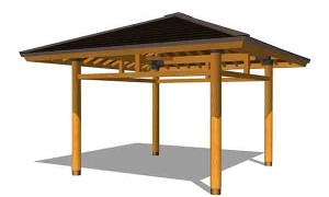 AF-079-30G四季あずまや 3000角、標準地域、ガルバリウム鋼板¥2,010,000 (税別)- 仕様 : 本体/杉材、接続金物/アルミ鋳物、屋根/ガルバリウム鋼板