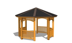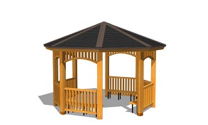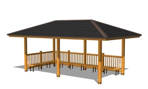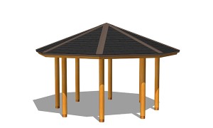 AFS-003B-G東屋(八角)ベンチ付¥3,800,000 (税別)- 仕様 : 本体/杉材、屋根/ガルバリウム鋼板、座板/桧、ベンチ脚/スチール