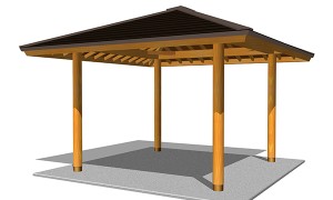 AFB-001防災東屋 3000角、標準地域、ガルバリウム鋼板¥2,370,000 (税別)- 仕様 : 本体/杉材、屋根/ガルバリウム鋼板