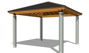 AFS-014-30G合成木材化粧柱東屋 3000角、標準地域、ガルバリウム鋼板¥2,710,000 (税別)- 仕様 : 柱/スチール、柱化粧材/合成木材、屋根/ガルバリウム鋼板、座板/合成木材