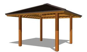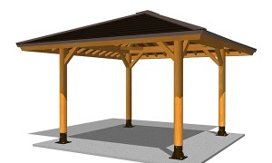 AFS-013-30G木化粧柱東屋 3000角、標準地域、ガルバリウム鋼板¥2,570,000 (税別)- 仕様 : 柱/スチール、柱化粧材/杉材、屋根/ガルバリウム鋼板、木部/杉