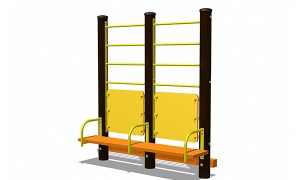PTH-002-02ストレッチベンチ二人用 高齢者向け健康器具¥510,000 (税別)- 仕様 : 本体/杉材、パネル/ポリエチレン樹脂板、金物/スチール